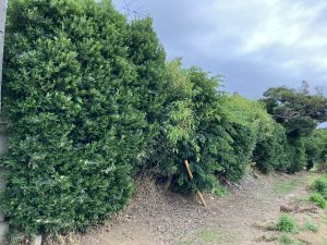 庭木は長年手を入れていなかったとのことで、枝葉が大きく広がり、風が強い日には折れてしまいそうな箇所も見受けられる状態でした。お隣との境界ラインにもかかっており、トラブルにつながる可能性もあるため、安全面に配慮しながら慎重に作業を進めました。